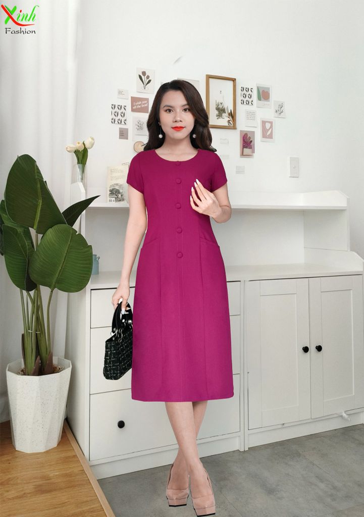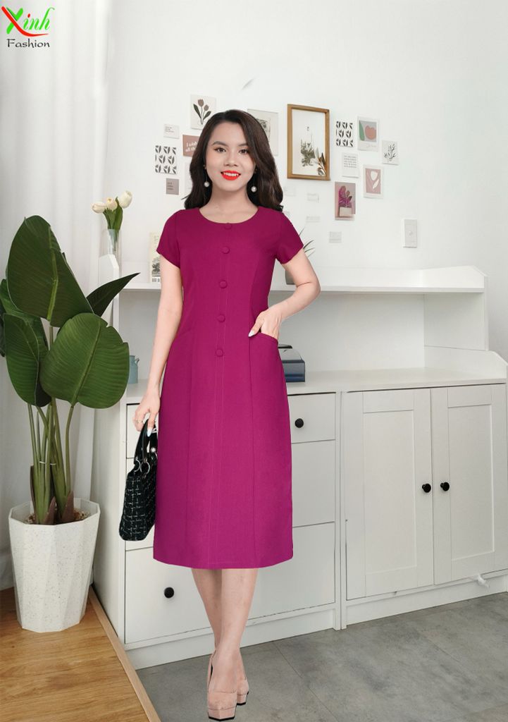 Vì tinh thần của màu cổ điển nên khi kết hợp với chiếc đầm dáng suông sẽ càng phù hợp với môi trường công sở thanh lịch, chuyên nghiệp.
