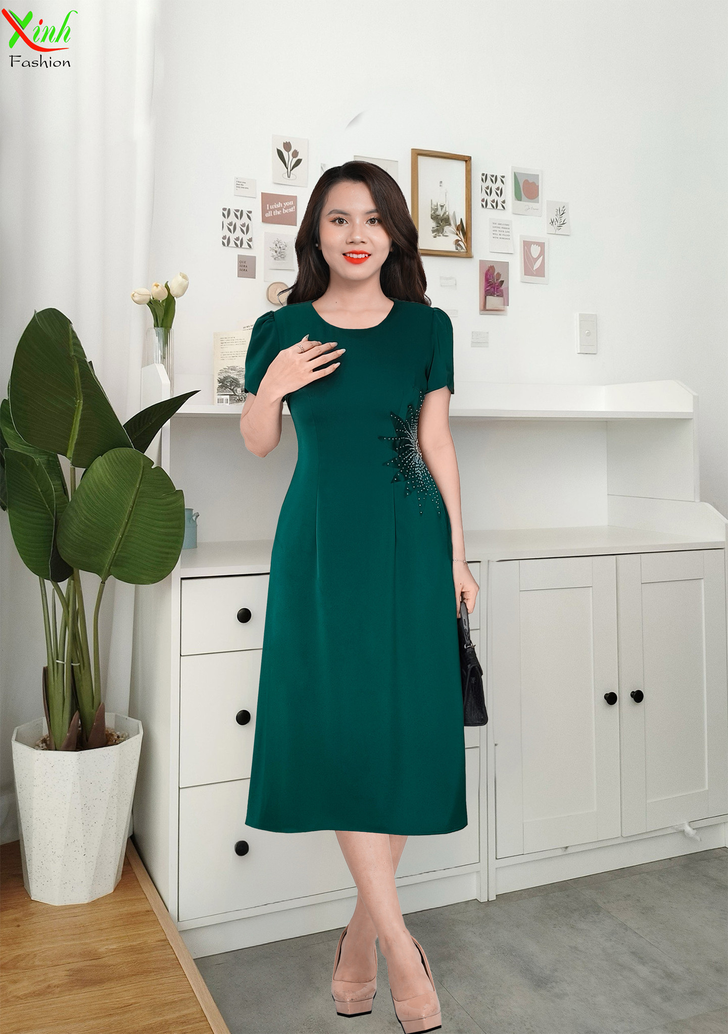 Thiết kế eo cao "dấu nhẹm" ngấn bụng, điểm nhấn HOA KẾT THỦ CÔNG tinh tế, siêu xịn đẹp, lại vừa giúp kéo chân thon dài, một chiếc đầm hoàn hảo che mọi khuyết điểm cho các chị luôn nhé!