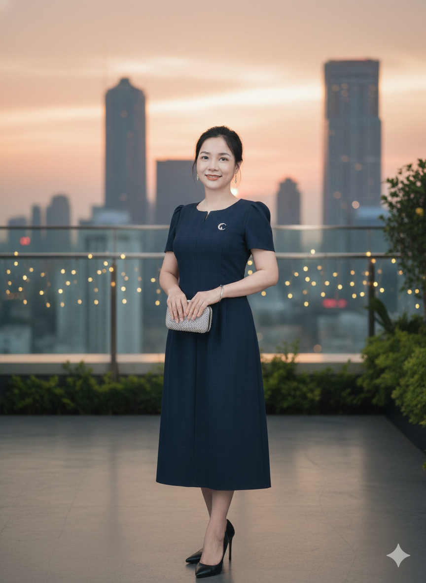 Một chiếc váy với form dáng basic, nhún vai tinh tế, tạo cho người mặc một cái đẹp gọi là thon gọn, sang chảnh và hiện đại hơn bao giờ hết, tự tin và thả ga hơn mà không còn lo ngại bởi cái vòng mỡ bụng