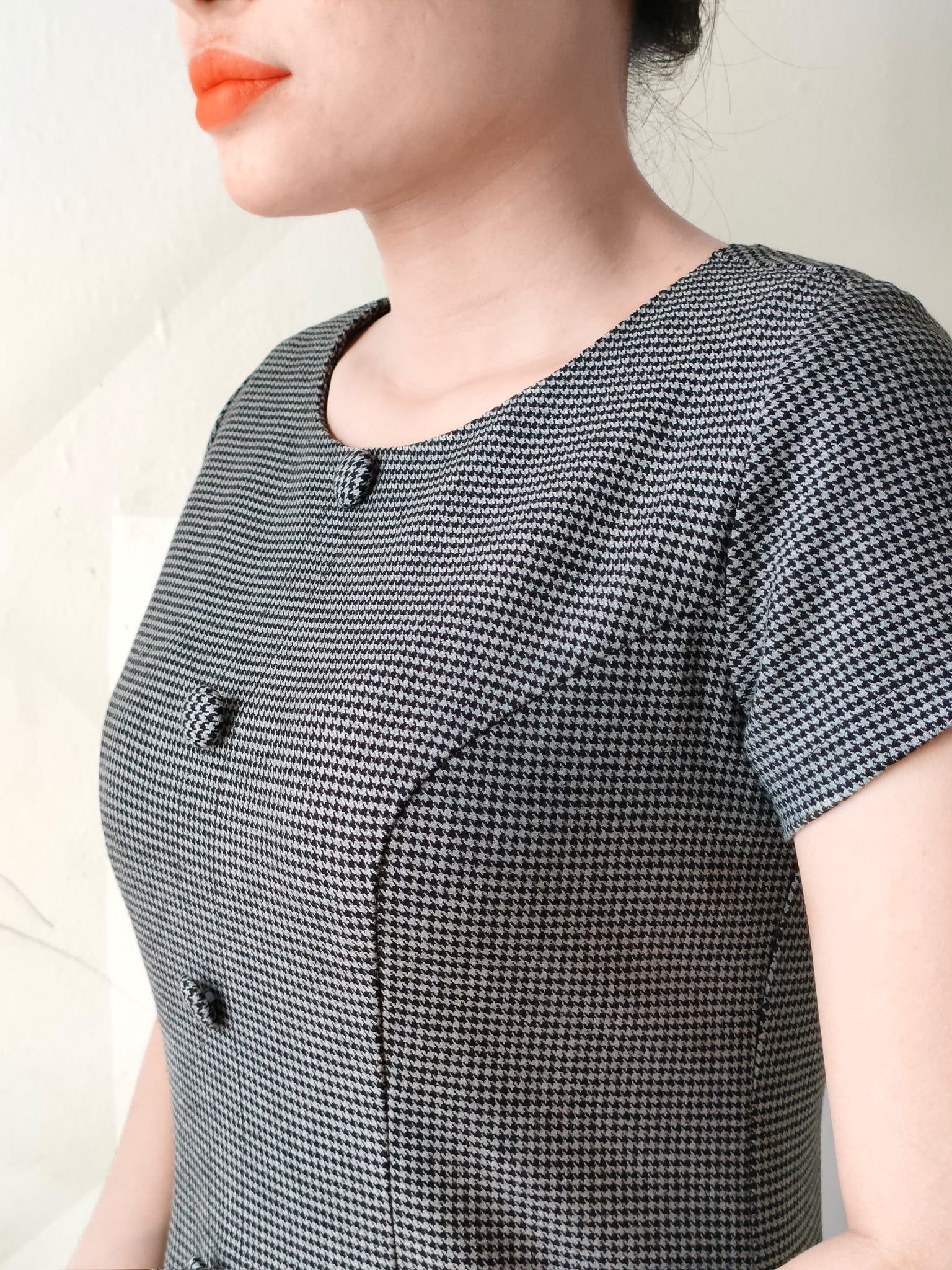 Quen thuộc nhưng lại không hề gây nhàm chán với họa tiết caro nhuyễn, vừa tạo hiệu ứng che bụng tốt vừa dễ mặc, không kén da.