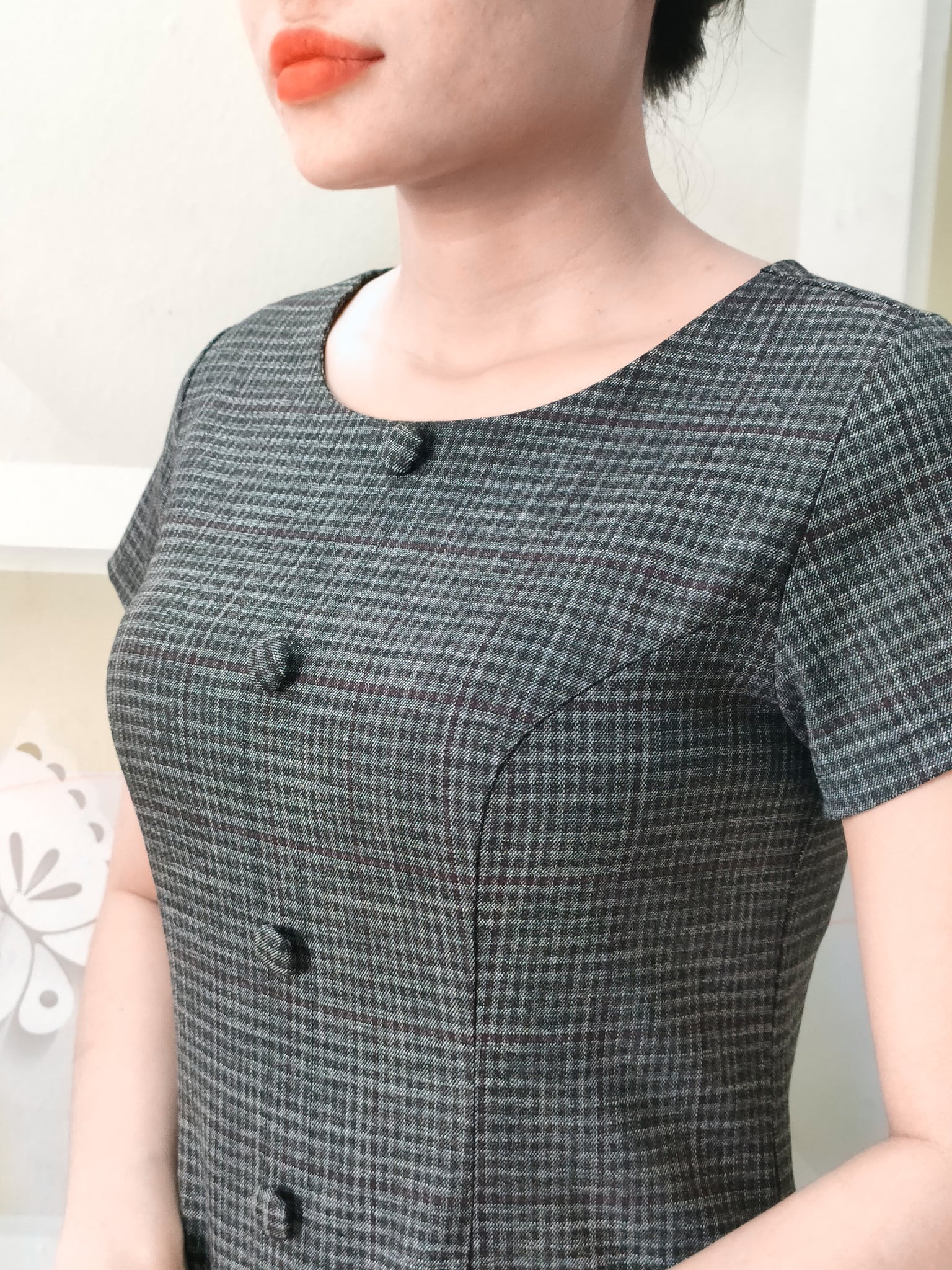 Quen thuộc nhưng lại không hề gây nhàm chán với họa tiết caro nhuyễn, vừa tạo hiệu ứng che bụng tốt vừa dễ mặc, không kén da.