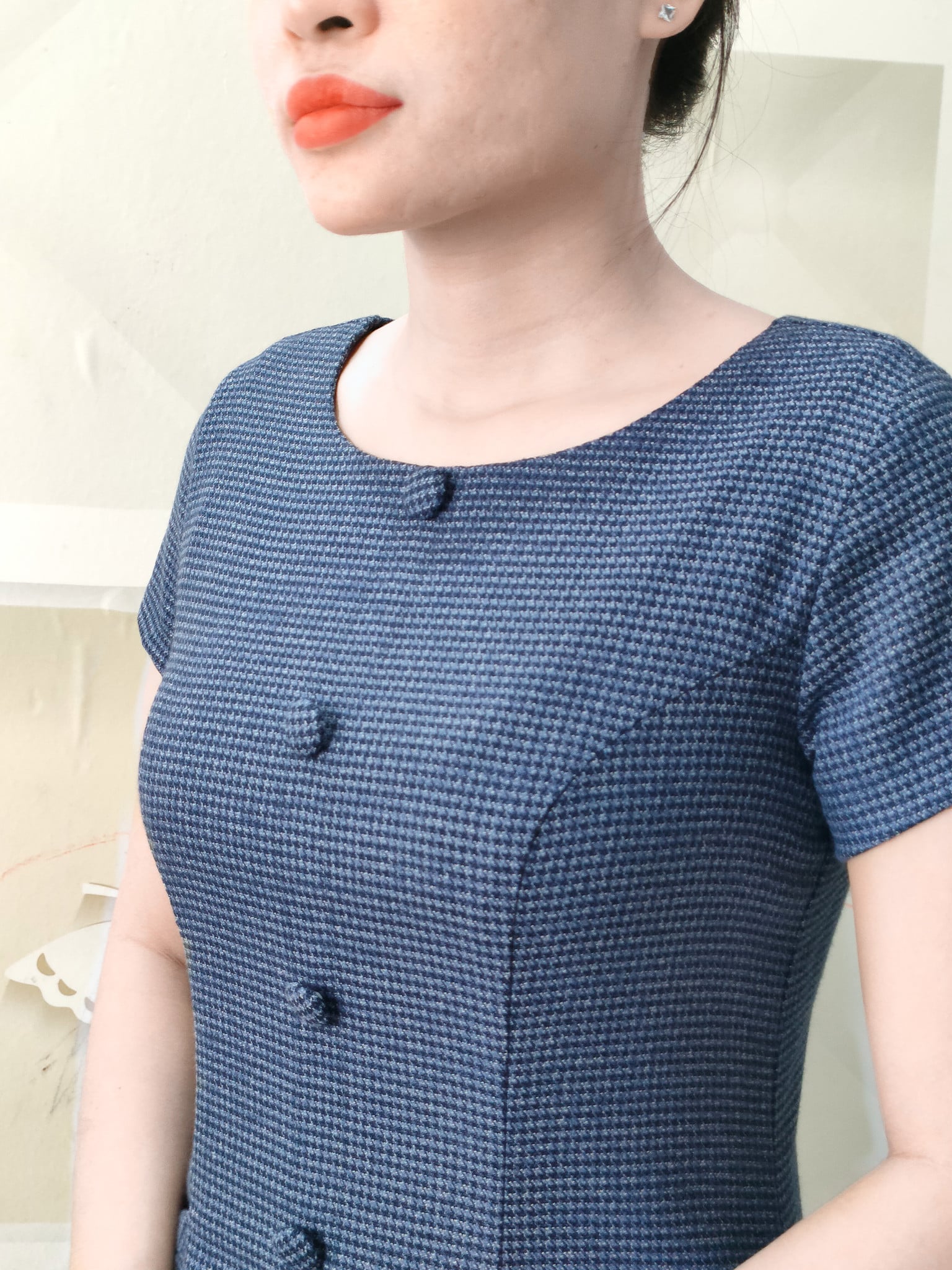 Quen thuộc nhưng lại không hề gây nhàm chán với họa tiết caro nhuyễn, vừa tạo hiệu ứng che bụng tốt vừa dễ mặc, không kén da.