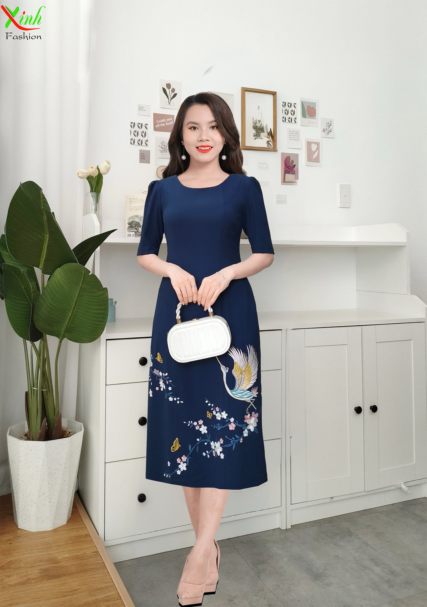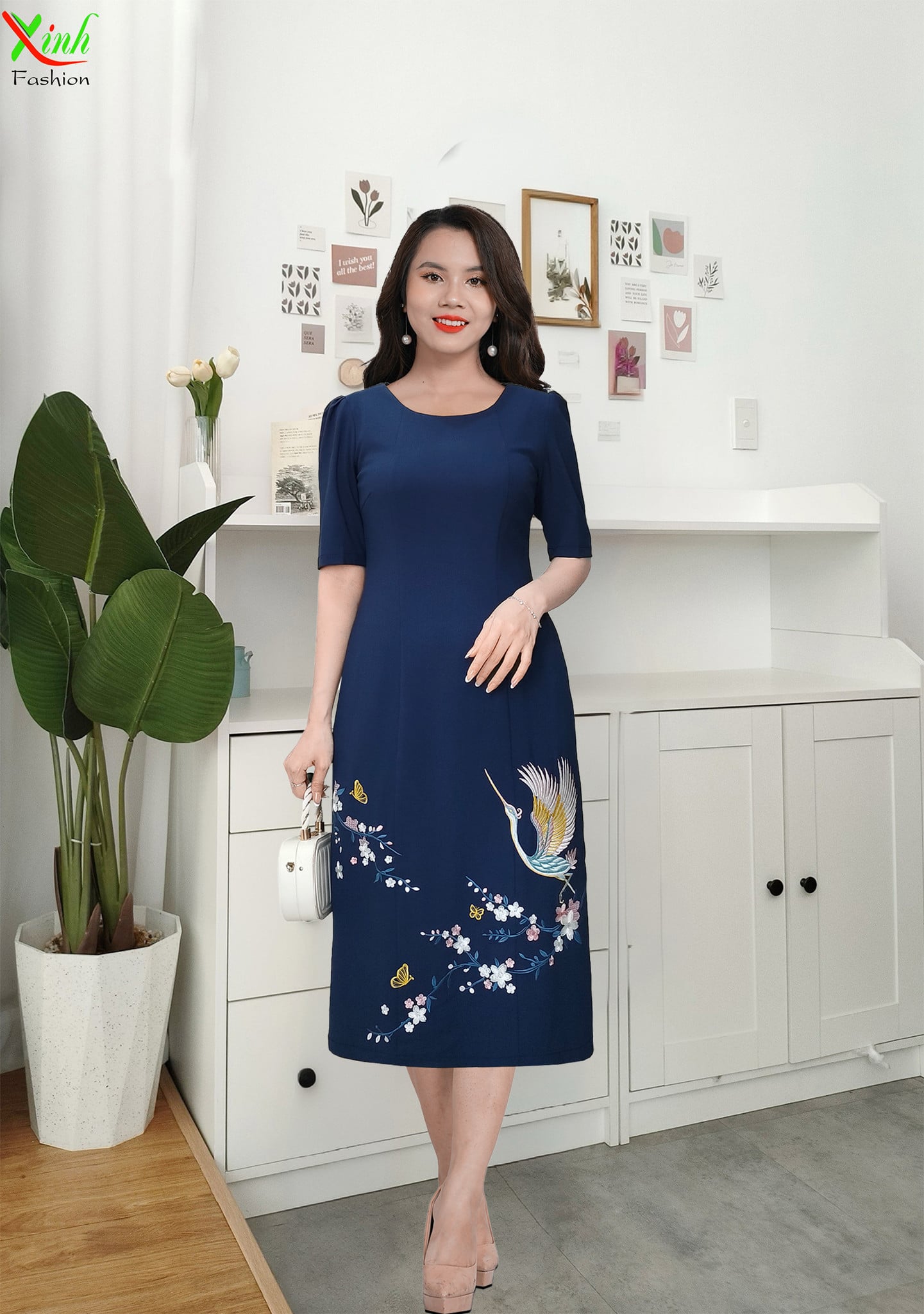 Thiết kế đầm trung niên cao cấp dành cho phụ nữ Việt Nam yêu thích phong cách thanh lịch và tinh tế. Đầm dáng suông nhẹ, độ dài qua gối giúp che khuyết điểm hiệu quả, tôn dáng tự nhiên và mang lại cảm giác thoải mái khi mặc.